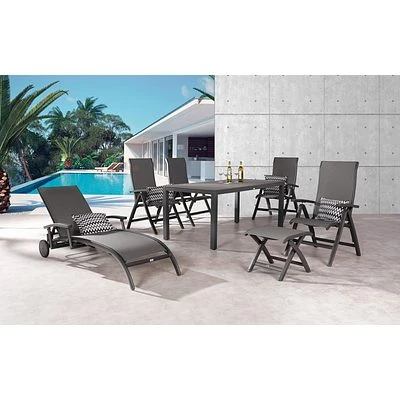 Das Gestell, einschließlich der Armlehnen und der Gelenkteile, besteht komplett aus Aluminium. Dies macht den Sessel absolut witterungs- und korrosionsbeständig und leicht im Handling. Der Bezug besteht aus einer Bespannung aus reißfestem und atmungsaktivem Ergotex-Gewebe, die Rückenfläche besitzt eine Doppel-Bespannung. Diese verleiht dem Design eine einzigartige Note und bietet fantastischen Sitzkomfort. Die Rückenlehne ist mehrfach verstellbar. Maße: Gesamtmaß: BxTxH in cm: 62x68x110 / Sitzfläche BxT in cm: 48×45 / Sitzhöhe: 44 cm, Höhe der Armlehne: 65 cm / Höhe der Rückenlehne: 72 cm
