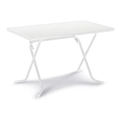 Der Scherenklapptisch Primo besteht aus einem robusten Stahlrohrgestell mit einem praktischen Scheren-Klappmechanismus. Die wetterfeste und U.V. beständige Tischplatte ist belastbar, kratzfest und hitzebeständig. Mit zusätzlich farblich auf das Gestell angepasstem Schutz-/Kunststoffumleimer an der Tischplatte. Der Tisch ist mit wenigen Handgriffen zusammenklappbar und lässt sich platzsparend verstauen.