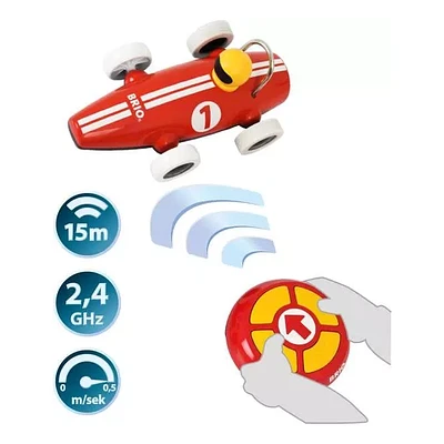 Brumm, brumm! Mit seinem leuchtend roten Fahrwerk und seinem windschnittigen Aussehen bietet der BRIO RC Rennwagen mit Fernsteuerung den Kindern viele Stunden rasanten Rennfahrspaß. Dieser Rennwagen mit seiner intuitiven Fernsteuerung ist ein perfektes Spielzeug für Zweijährige, die nach einigen Übungsrunden im Zimmer schnell die Steuerung übernehmen werden. Das Spielzeug fördert ihre Geschicklichkeit und ihr Kontrollvermögen auf witzige, unvergessliche Weise.