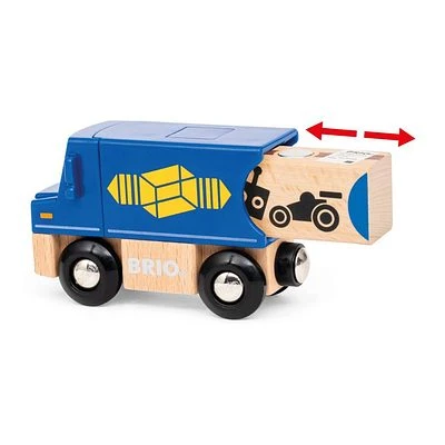 Das Zustell-Fahrzeug von BRIO bringt die Einkäufe sicher und schnell vor die eigene Haustür. Der LKW kann mit zwei verschiedenen Holz-Containern beladen werden. 3 Teile Ab 3 Jahren.