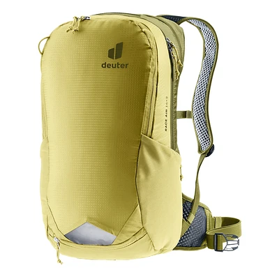 Sportlich unterwegs auf Bike-Tagestour mit federleichtem Gepäck: Race Air bringt gerade einmal 800 Gramm auf die Waage. Durch die dreiseitige Belüftung und kompakten Sitz dank ergonomisch geschnittener Netz-Schulterträger und -Hüftflossen lassen sich mit dem Race Air Modellen gerne schweißtreibende Strecken fahren. Mit der Volumenerweiterung kann beim Race Air 14+3 auch mal mehr mit auf Tour.