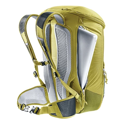 Der Großstadtdschungel fordert Gleichgewicht und ist schweißtreibend zugleich. Da muss der Lastenschwerpunkt des Rucksacks körpernah und die Luftzirkulation maximal sein. Dafür sorgen das komfortable Airstripes Tragesystem mit reduzierter Rückenauflage, das luftdurchlässige Air Spacer Mesh, die ergonomisch geformten, perforierten Schulterträger und Hüftflossen und der verstellbare Brustgurt. Im Inneren lässt sich dank Volumenerweiterung neben Arbeitsunterlagen auch der Einkauf verstauen. Helmhalterung, abnehmbare Regenhülle und reflektierende Elemente sorgen für die Sicherheit.