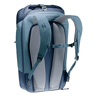 Dank ergonomischer Schulterträger und geringer Rückenauflage des Airstripes Rückensystems punktet der Allrounder mit maximaler Luftzirkulation und hohem Tragekomfort. Der Roll-Top-Zugang mit Schnalle und die große Rundbogenöffnung mit Reißverschluss ermöglichen einen schnellen Zugriff auf das Gepäck im Hauptfach. Der Stoff des PFAS-freien, mit dem Grünen Knopf zertifizierten bluesign® Produkts besteht aus 24 recycelten 0,5 Liter PET Flaschen und wird nach dem bluesign® Standard hergestellt.