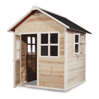 Wer wollte noch nicht sein eigenes Spielhäuschen haben? Mit dem EXIT Loft 100 Gartenhaus haben Sie nun Ihr eigenes kleines Häuschen schnell und einfach im Garten stehen. Das Gartenhaus ist robust gebaut und besitzt ein modernes Design. Es bietet bequem Platz zum spielen und ist aus hochwertigen Materialien hergestellt. Der dadurch entstehende natürliche Look trägt sein übriges zum Äußeren bei. Somit ist das EXIT Loft 100 eine tolle Erweiterung in jedem Garten und eine große Freude für jedes Kind.
