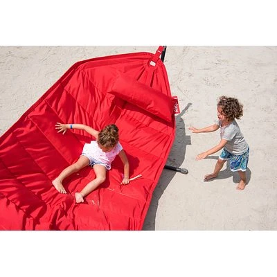 Eine Hängematte für alle: Headdemock (ein Wortspiel zum englischen Satz: „Have you got one too?“) bietet im typisch extravaganten oversized Fatboy Design Platz für mehrere Personen. Diese luxuriös große und weich gepolsterte Hängematte kommt ganz ohne Bäume oder Seile aus: die Matte selbst ist in einem stabilen, pulverbeschichtetem Metallrahmen aufgehängt, so dass sich jeder in Garten oder auf der Terrasse einen persönlichen Lieblingsplatz zum „Abhängen“ schaffen kann. Headdemock ist aus langlebigen Materialien gefertigt und sorgt mit wasserabweisendem und UV-beständigem Stoff jahrelang für richtig viel Liegeluxus. Und wenn der Sommer doch mal endet, werden Matte und Gestell einfach zusammengeklappt und in zweckmäßigen Taschen verstaut, bis das warme Wetter zurück gekehrt ist.