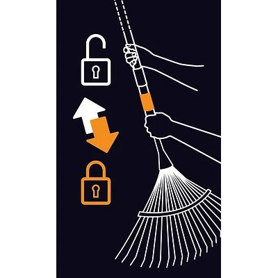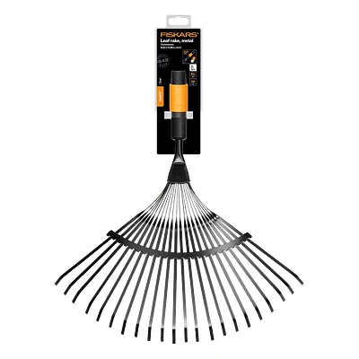 Seine 20 Zinken sind aus stabilem Stahl gefertigt, was sie außerdem sehr langlebig macht. Die Breite des Fiskars QuikFit™ Fächerbesens beträgt 43 Zentimeter und ermöglicht es dem Benutzer, eine große Fläche mit nur einem Mal zu bearbeiten. Das Produkt ist insgesamt 47 Zentimeter lang und wiegt dabei 445 Gramm. Es kann sowohl mit den Stielen als auch mit dem Handgriff der QuikFit™-Reihe benutzt werden.