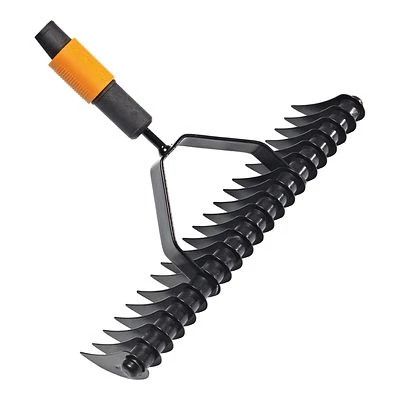 Dieses Gerät besteht aus gehärtetem Karbonstahl, ist sehr stabil und langlebig. Grundsätzlich kann es zum gründlichen Reinigen des Rasens benutzt werden. Mit dem Fiskars QuikFit™ Rasenlüfter können zum Beispiel Rasenfilz und Moos von den Rasenflächen entfernt werden. Dank seiner Breite von 37 Zentimetern können größere Flächen in nur wenigen Arbeitsschritten bearbeitet werden, was wiederum Zeit spart.