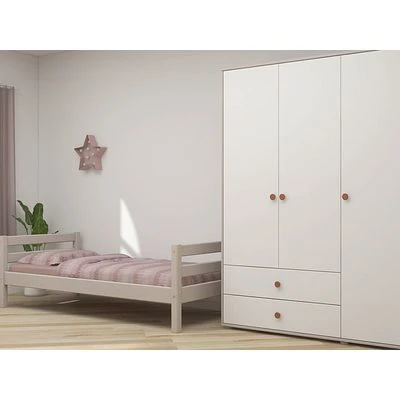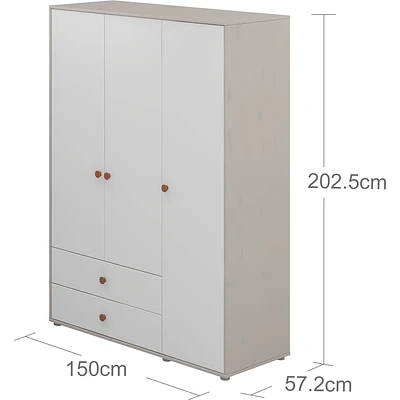 Details vom Artikel FLEXA Classic Kleiderschrank mit 3 Türen u. 2 Schubladen grau/Lack weiß/rosa: