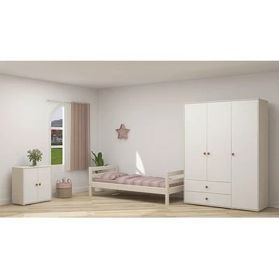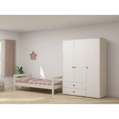 Details vom Artikel FLEXA Classic Kleiderschrank mit 3 Türen u. 2 Schubladen mattweiß/Lack weiß/rosa: