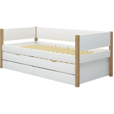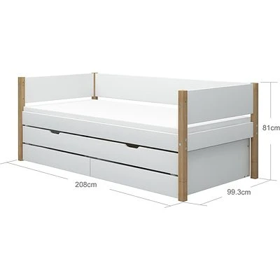 Details vom FLEXA Nor Bett 90x200cm mit Ausziehbett und 2 Schuladen weiß/eiche:
