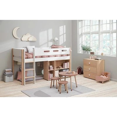 - Die Kommode kann unter dem FLEXA Popsicle mittelhohen Bett platziert werden. Aber auch als einzelnes Möbelstück gibt es eine gute Figur ab.