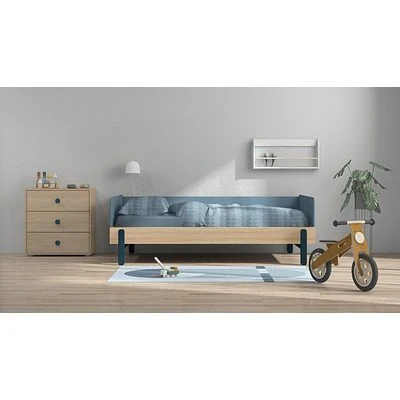 - Kopfteil, hintere Absturzsicherung und Pfosten sind in den Farben Blueberry, Kiwi und Cherry erhältlich und aus Massivholz gefertigt.