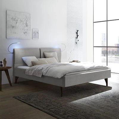 Wie mit spitzer Feder gezeichnet sind die geschwungenen Formen des Bettes Tamara ein Augenschmeichler, ohne verspielt zu wirken. Fortgeführt in einem filigranen Holzfuss, der nach unten hin schmal ausläuft. So leichtfüssig passt es zu jedem Schlafzimmerstil.