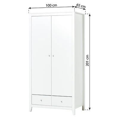 Details vom Hoppekids Kleiderschrank 2 Türen und 2 Schubladen weiß:
