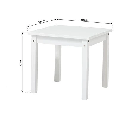 - Die Tischfläche beträgt 50x50cm und der Tisch ist 47cm hoch.