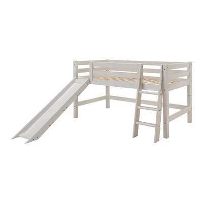 Besonders für die Kleinen, die aber dennoch ein Hochbett haben möchten, ist das Halbhohe Bett teilbar mit Schrägleiter und gerader Rutsche in weiß ein absolutes Muss! Ausstaffiert mit den Infanskids Kissen, Matratzen und Textilien wird das Halbhohe Bett zum bunten Hingucker im Kinderzimmer. Das Bett ist schnell zum normalen Bett zerlegt, kann aber mit dem passenden Set zum Hochbett erweitert werden.