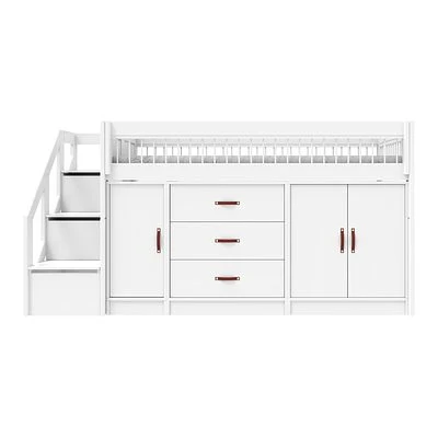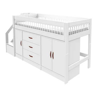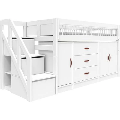 Details vom Lifetime halbhohes Bett Breeze mit Treppe ALL-IN-ONE Aufbewahrungselem. mit Deluxe Lattenrost weiß lackiert: