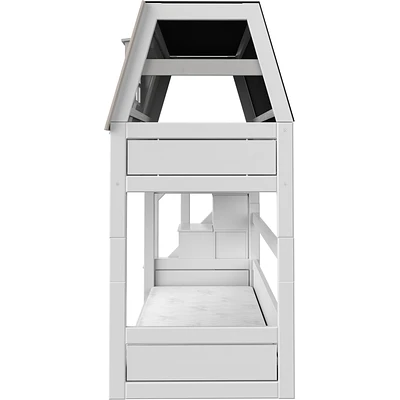 Details vom Lifetime niedriges Hangout Abenteuerbett mit Deluxe Lattenrost und Treppe weiß lackiert:
