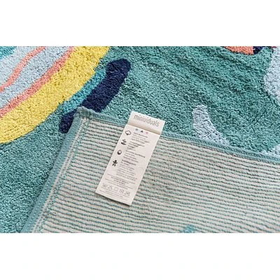 Brummkreisel, Robben, die Bälle balacieren und hübsche Rauten schmücken diesen Kinderteppich. Mit seinem 3D-Effekt lassen sich alle Elemente wunderbar ertasten. Auch dieser Teppich ist aus 100% waschbarer Baumwolle gefertigt und ist in seiner Garnfärbung natürlich. Für Sicherheit beim Toben ist auch durch die Latexbeschichtung auf der Rückseite des Teppichs gesorgt, denn so leicht kann er nicht mehr verrutschen.