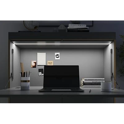 Mit FLAI HOME-OFFICE hat das Designer-Duo kaschkasch einen flexiblen Sekretär geschaffen, der mit seinem großzügigen Stauraum für Ordner, Technik oder Arbeitsmaterial ideal als Home-Office nutzbar ist. Die kleinere Variante des Sekretärs mit 1363 mm Höhe bietet einen flexibel unterteilbaren Unterschrank, in dem ein Drucker platziert werden kann. Im oberen Bereich steht zusätzlich Platz für einen Monitor zur Verfügung. Zusätzlichen Komfort ermöglichen die Push-to-open-Technik, der gedämpfte Klappenhalter, die eingebaute Beleuchtung und die Kabeldurchführungen. Die große FLAI-Variante mit 2168 mm Höhe bietet zusätzlichen Stauraum oberhalb des Arbeitsplatzes.