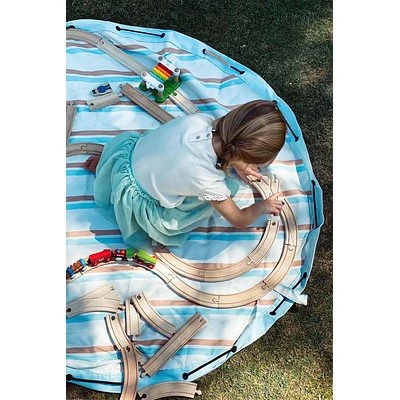Der Play&Go Outdoor ist eine einzigartige wasserdichte Lösung, um all Ihre Sachen für einen Tag an den Strand, im Park oder ein tolles Picknick mitzunehmen. Legen Sie ihn für einen Platz zum Sitzen oder Spielen darauf aus. Wenn der Boden nass ist, bleibt man definitiv trocken. Zeit zu gehen? Ziehen Sie einfach am Seil und alles ist ordentlich eingepackt. Der verstellbare Schultergurt erleichtert das Tragen und ist außerdem mit einem Sand-/Schmutzabweiser versehen, so dass keine zusätzlichen kg zu tragen sind.