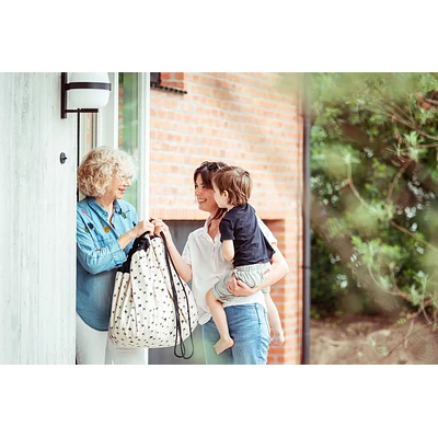 - Die Spielmatte verwandelt sich in eine praktische Aufbewahrung, für zuhause oder unterwegs