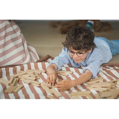 Suchen Sie die ideale Aufbewahrungstasche, die Sie nicht verstecken müssen? Unsere neue Brown Stripes 2-in-1-Aufbewahrungstasche und Spielmatte machen das Spielen und Aufräumen leicht.