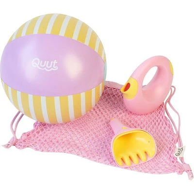 Mit dem Spielzeug-Set „Garden Set Banana Pink“ aus robustem Kunststoff von Quut bist du für den Frühling und Sommer im Garten oder am Strand perfekt ausgestattet. Das Set enthält den Strandball, die Gießkanne Cana (0,5 Liter) und den Rechen Raki. Geliefert wird das Set in einem Baumwollnetz für einfachen Transport auf den Spielplatz oder an den Strand.