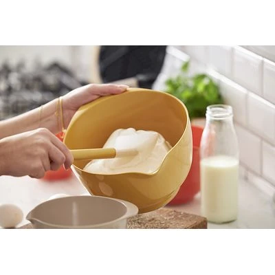 Die Margrethe-Schüssel ist die klassische Rührschüssel mit dem guten Griff, dem praktischen Ausguss und dem rutschfesten Bodenring. Die neue Version der Margrethe-Schüssel besteht aus Durostima®, einem recycelbaren Kunststoffmaterial. Die Schüssel ist jetzt noch robuster und bruchsicherer, und mit dem neuen Material auch für die Verwendung in der Mikrowelle und im Gefrierschrank geeignet. Die Margrethe-Schüssel eignet sich sowohl für die Zubereitung als auch zum Servieren, und wenn ein Deckel dazu gekauft wird, verwandelt sich die Rührschüssel in eine praktische Aufbewahrungsschüssel.