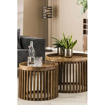 Details vom Artikel Rubjerg Design Couchtisch Set Tweak Ø65cm/Ø50cm Mangoholz massiv sandfarben: