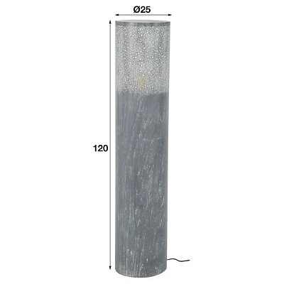 - Diese Stehlampe hat eine zylindrische Form mit einem Durchmesser von 25 Zentimetern.