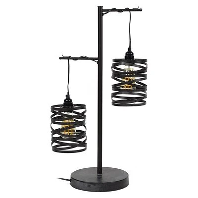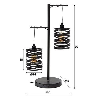 - Diese Tischleuchte hat zwei Spindelschirme.