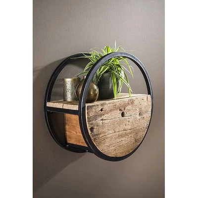 Rubjerg Design Wandregal Ø50cm Rund Mit Schublade Hartholz/Metall