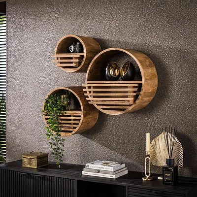 - Dieses Wandregal „Tweak“ ist aus Mangoholz mit sandfarbener Oberfläche gefertigt.