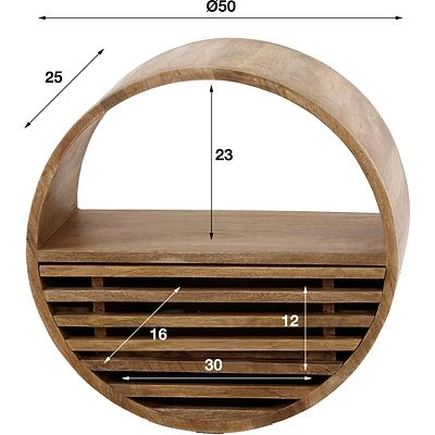 Details vom Artikel Rubjerg Design Wandregal Tweak Ø50 cm 1 Schublade Mangoholz massiv sandfarben: