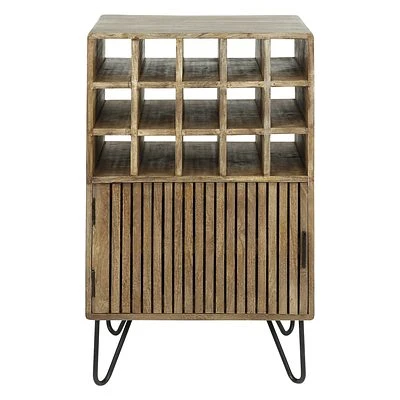 - Der Weinschrank hat 15 Fächer für Weinflaschen und unten eine Türe.