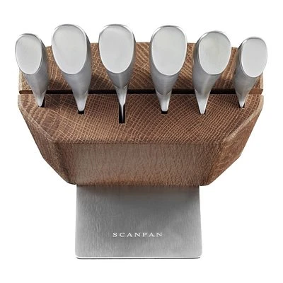 - Sehr hochwertiger Messerblock aus massier Eiche und sechs Scanpan Messern.