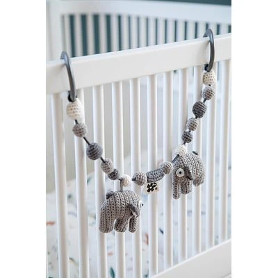 Von Hand gehäkelte Kinderwagenkette mit zwei Figuren in der Form des Elefanten Fanto – einem Klassiker von Sebra. In dieser Ausführung in der Farbe Classic Grey. Da dieses Produkt von Hand gehäkelt wurde, ist jedes Produkt einzigartig und die Optik kann variieren. Die Motive sind aus Bio-Baumwolle gefertigt und mit recyceltem Polyester gefüllt.
