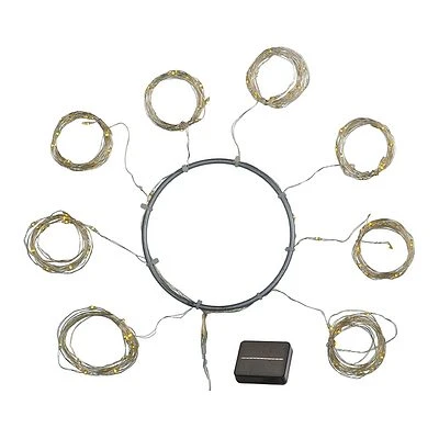Die Sonnenschirmkette von Knirke Solar lässt sich ganz einfach an Ihrem Sonnenschirm befestigen. Die neue Solarkette besteht aus 8 Kupferdrähten mit insgesamt 128 LED-Leuchten, die von einem Kupferring ausgehen. Jeder Draht ist 1,5 Meter lang und muss um die Arme unter dem Schirmtuch geschlungen werden. Hat ein Verlängerungskabel für die Solarzelle von 2 Metern.