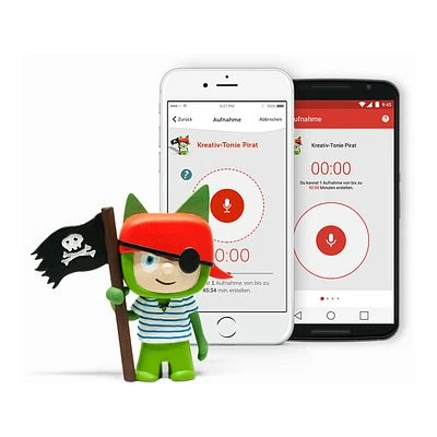 Mit der dazugehörigen, kostenlosen Smartphone-App können eigene Sprachaufnahmen aufgezeichnet und dem Kreativ-Tonie zugewiesen werden.
