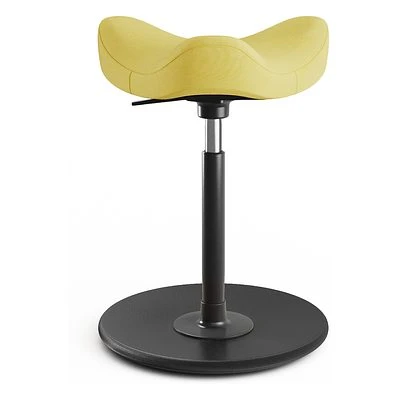 - Der Sattelsitz fördert eine aufrechte, dynamische Körperhaltung, durch die die Rumpf- und Bauchmuskulatur aktiviert und gestärkt wird.