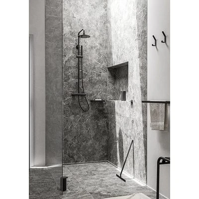 Rim ist eine umfangreiche Serie mit hübschen und funktionalen Einrichtungsartikeln für das Bad. Die zugleich exklusive und extrem schlichte Formensprache wurde in Zusammenarbeit mit dem dänischen Designbüro VE2 entworfen. Die Designs geben Ihnen die Möglichkeit, Ihre Vorliebe für ästhetisch ansprechendes Design auszuleben – und gleichzeitig Ruhe und Zusammenhang in der Einrichtung zu schaffen. Mit Rim können Sie das Bad komplett mit allem von Spiegeln über Regale bis hin zu Abstreifern und Seifenspendern ausstatten. Die Produkte der Serie sind aus robustem pulverbeschichtetem Aluminium hergestellt, in Schwarz und Weiß erhältlich und selbstverständlich reinigungsfreundlich. Mehrere der Artikel können an der Wand montiert werden, sodass sie einfach zu verwenden sind, was sowohl die Hygiene als auch die Ästhetik fördert.